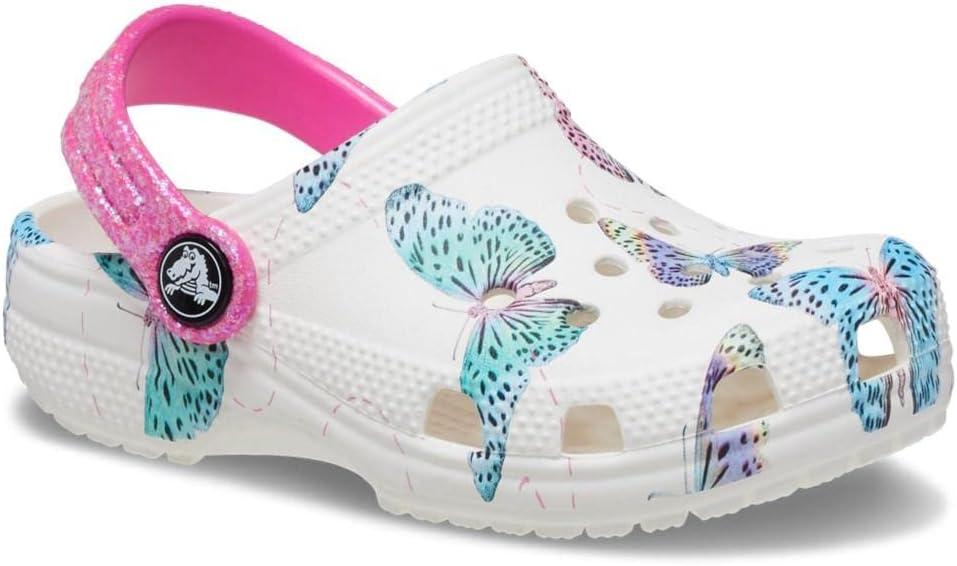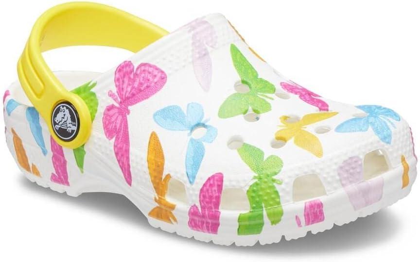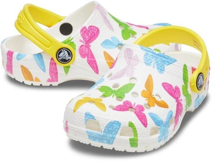 Crocs Unisex-Child Classic Graphic Clog(Butterfly/White)