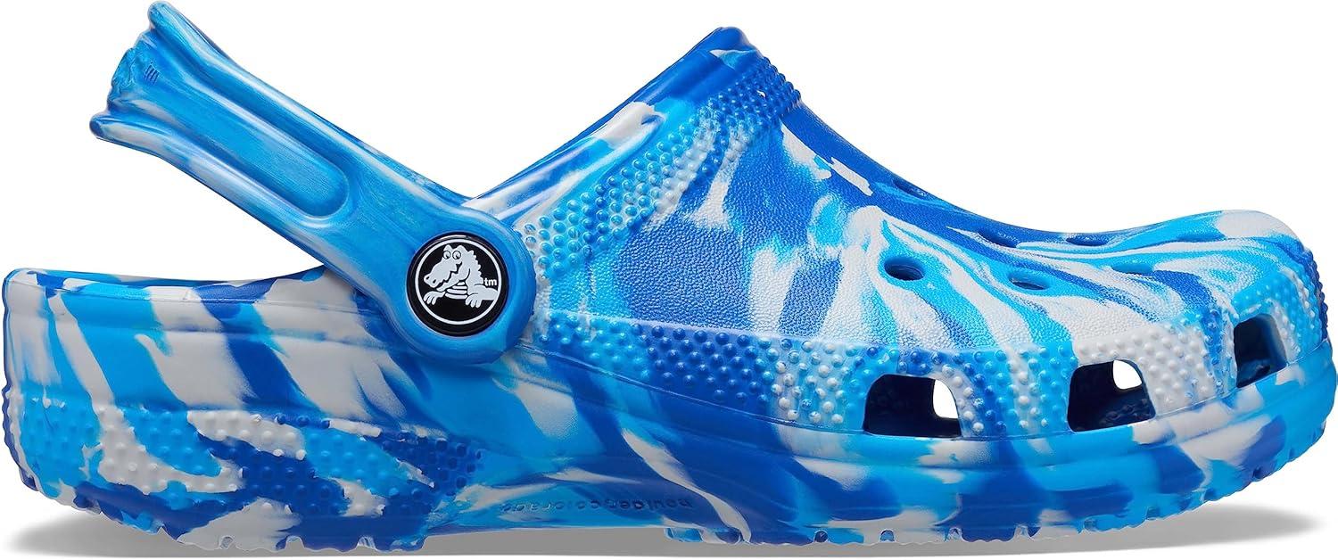 Crocs Kids’ Classic Marbled Tie-Dye Clog(White/Bright Cobalt)