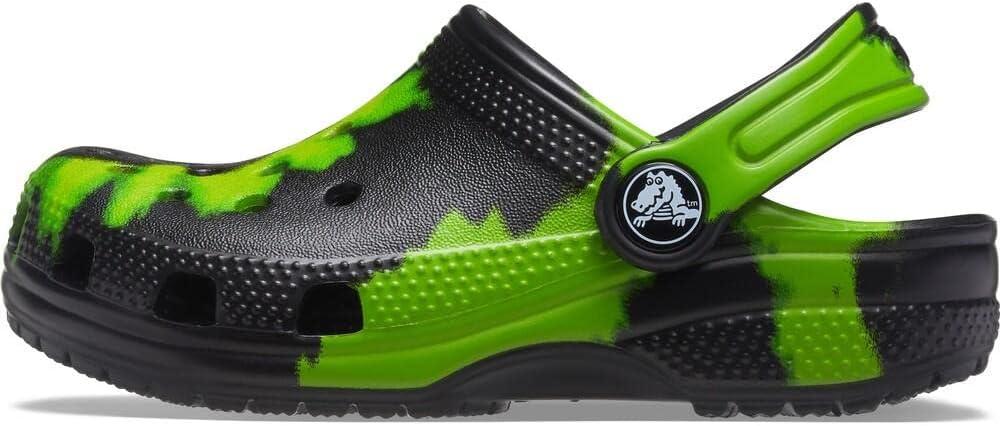 Crocs Unisex-Child Classic Graphic Clog(Black/Lime Punch)