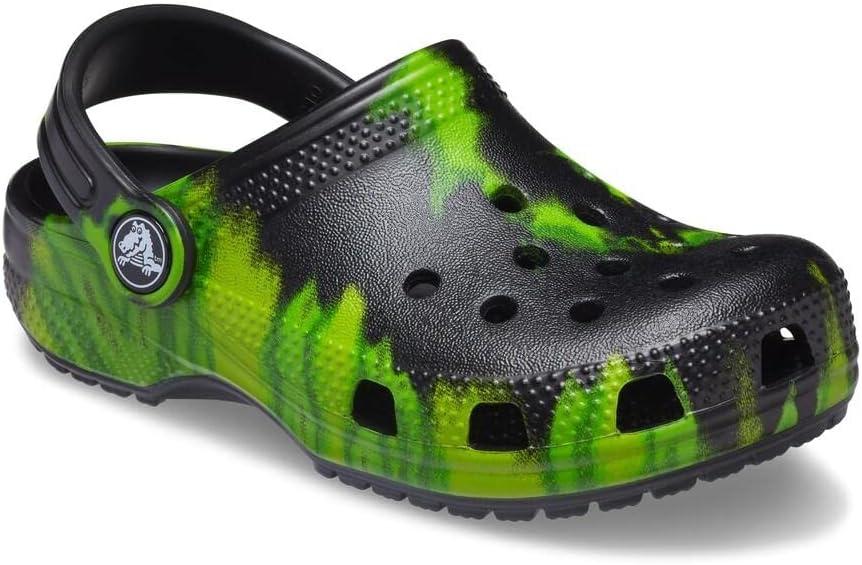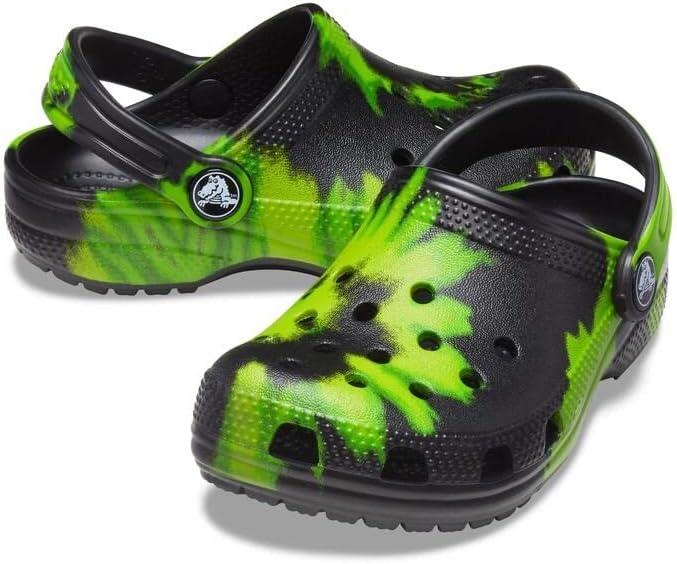Crocs Kids’ Classic Marbled Tie-Dye Clog(Varsity Red/Multi Glow in the Dark)