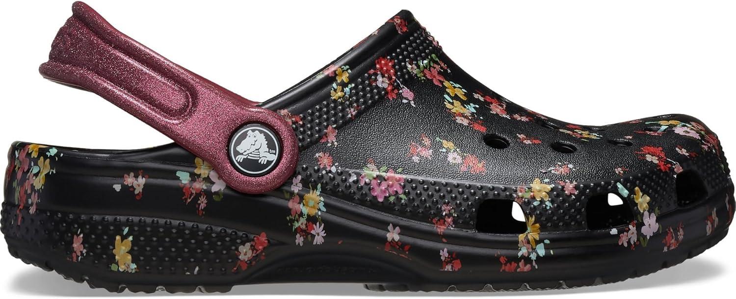 Crocs Unisex-Child Classic Graphic Clog(Black/Multi Ditsy Floral)