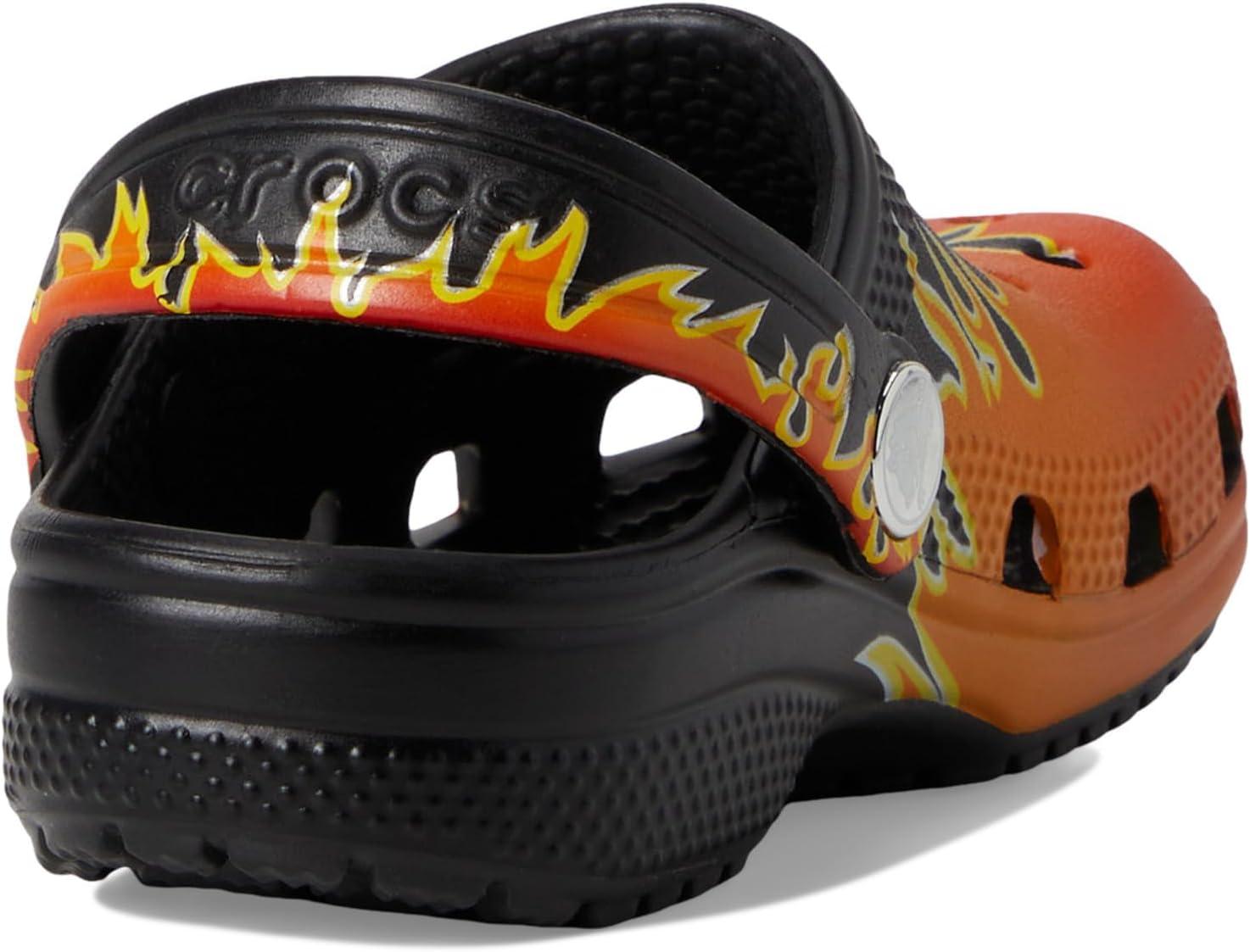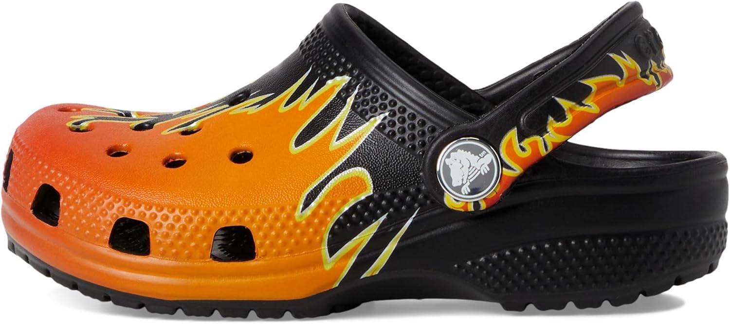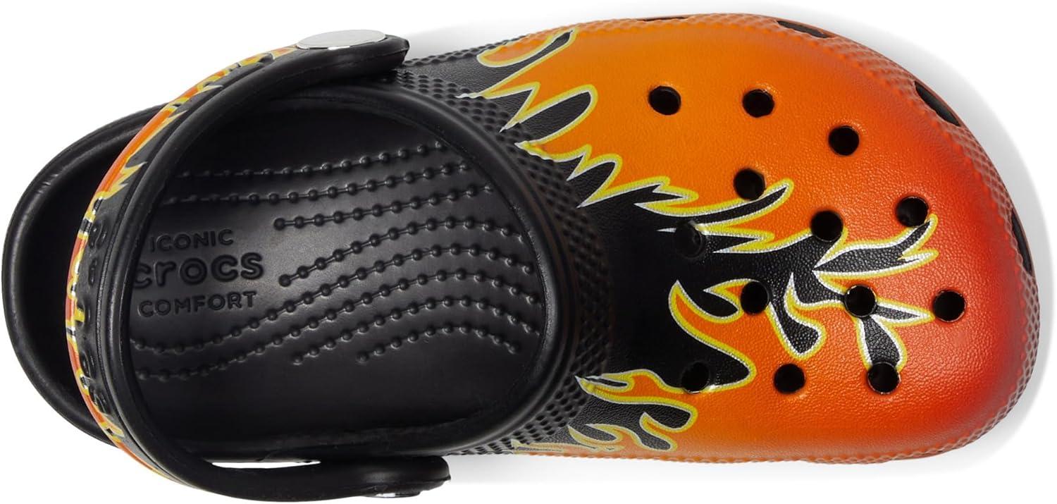 Crocs Unisex-Child Classic Graphic Clog(Black/Multi Flames)