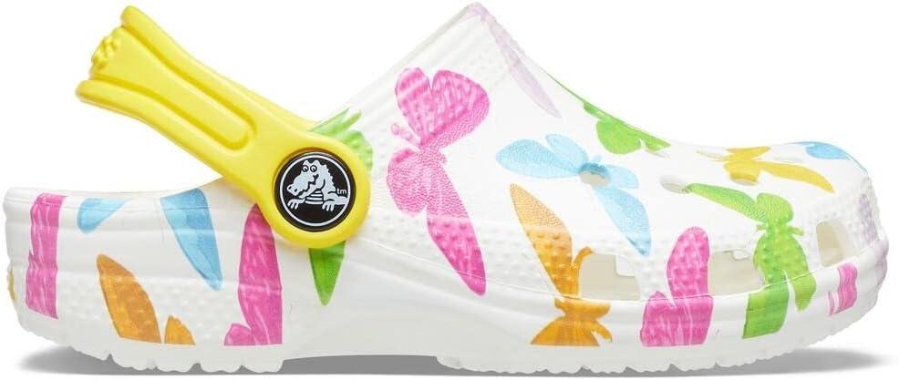 Crocs Unisex-Child Classic Graphic Clog(White/Multi Butterfly)