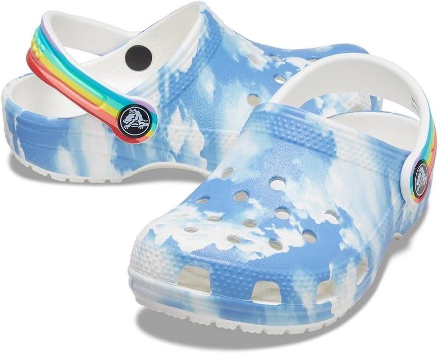 Crocs Unisex-Child Classic Graphic Clog(Clouds/Rainbow)