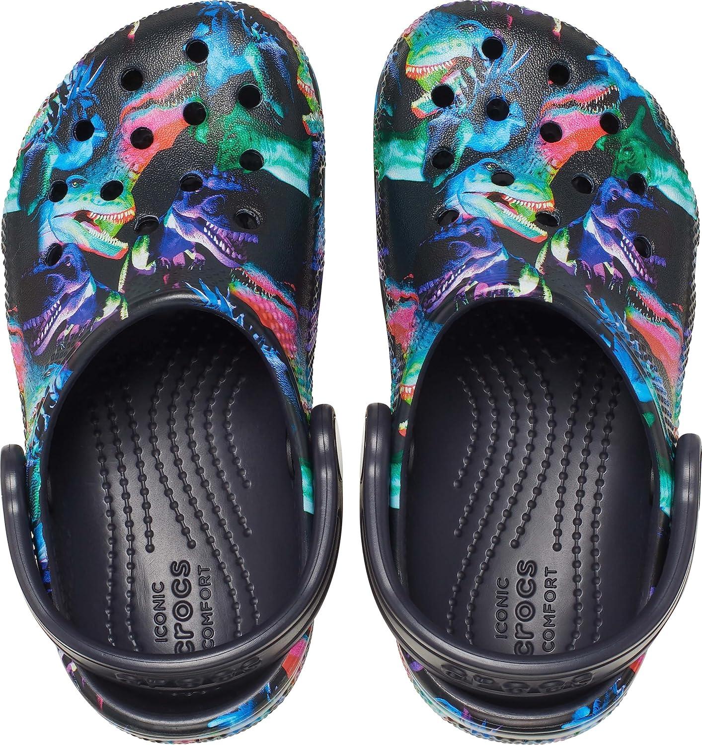 Crocs Unisex-Child Classic Graphic Clog(Deep Navy/Multi Dino)