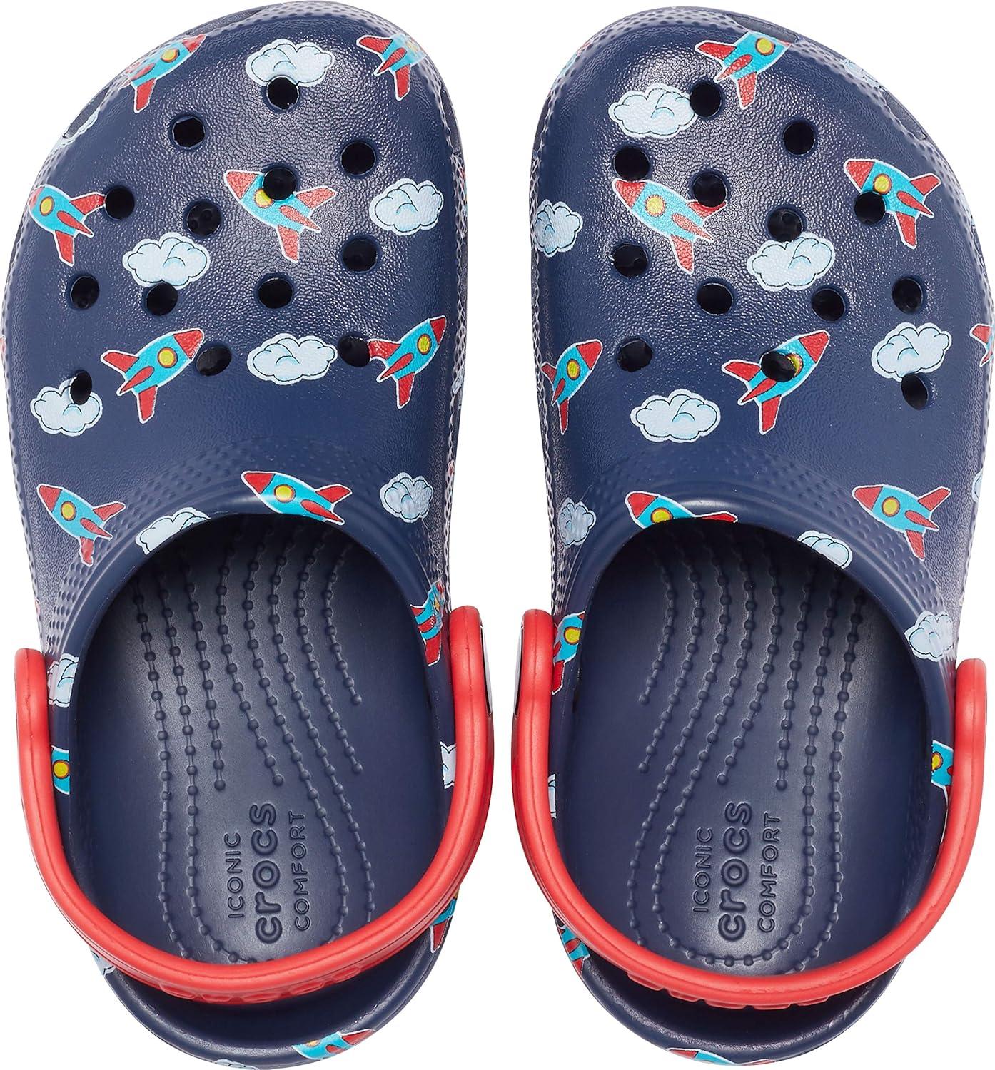 Crocs Unisex-Child Classic Graphic Clog(Rocket/Clouds)