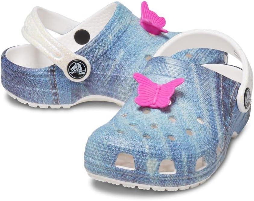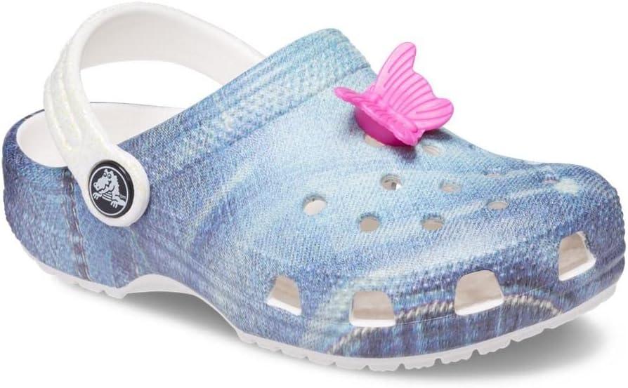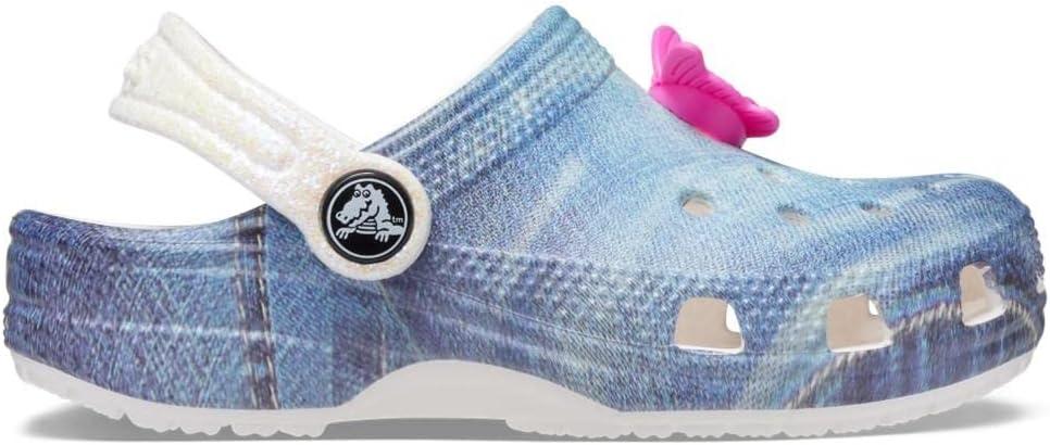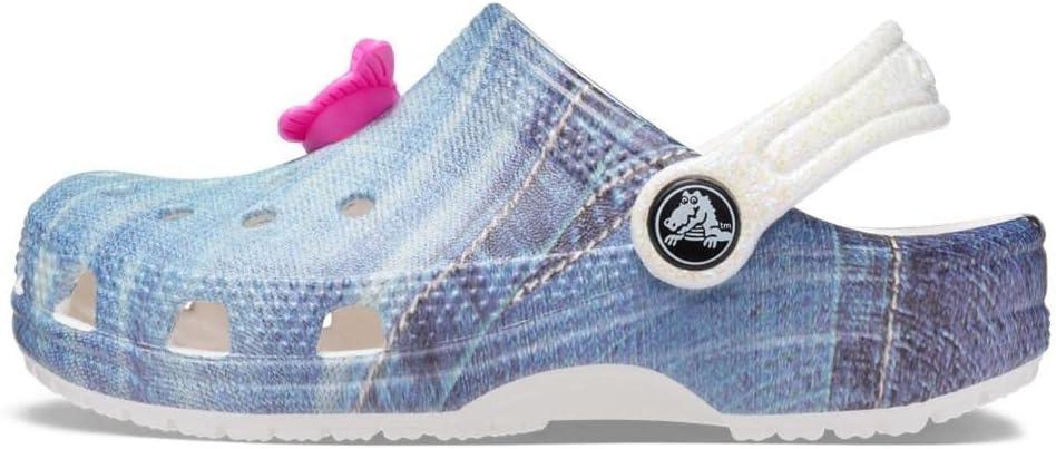 Crocs Unisex-Child Classic Graphic Clog(Denim Patch/White Multi)