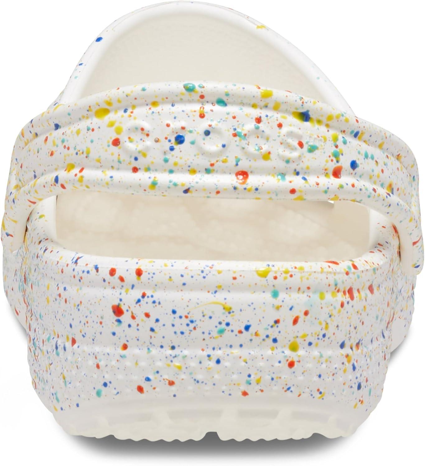 Crocs Unisex-Child Classic Graphic Clog(White/Multi Paint Splatter)