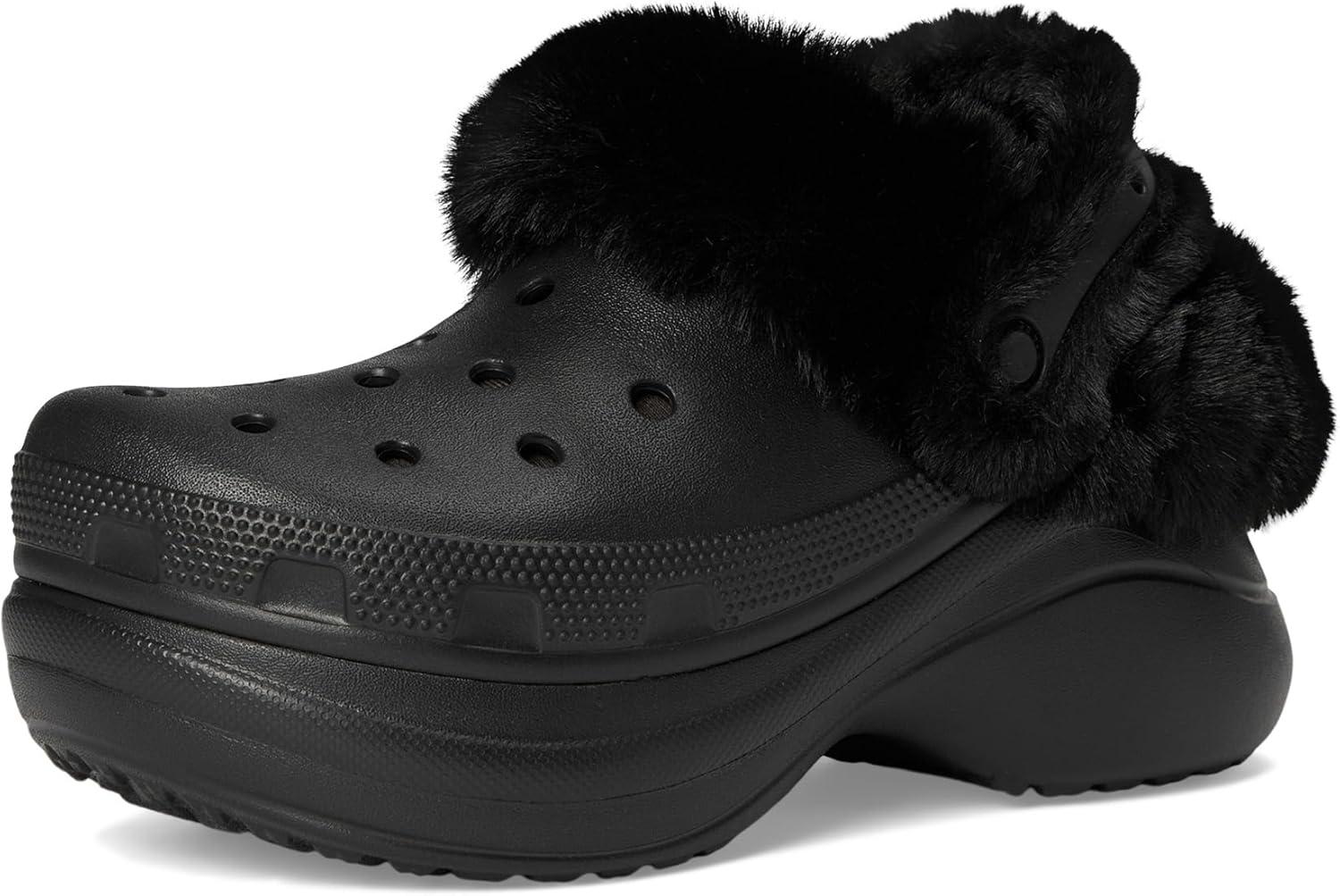 Crocs Women’s Bae Lined Clogs, Fuzzy Platform Slippers(Black)