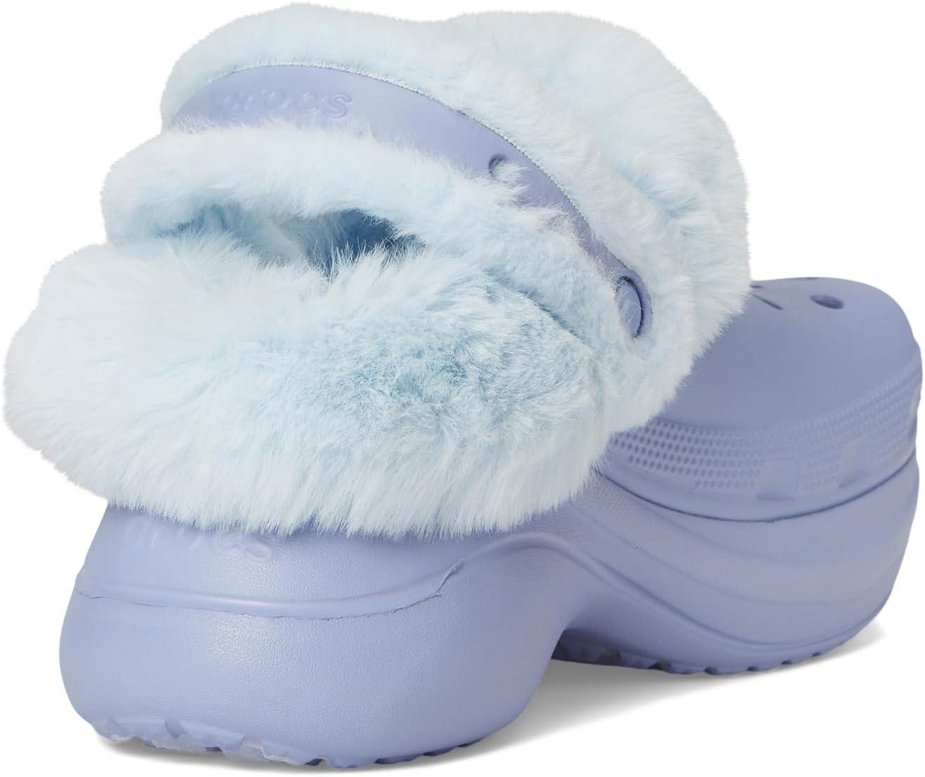 Crocs Women’s Bae Lined Clogs, Fuzzy Platform Slippers(Blue Haze)