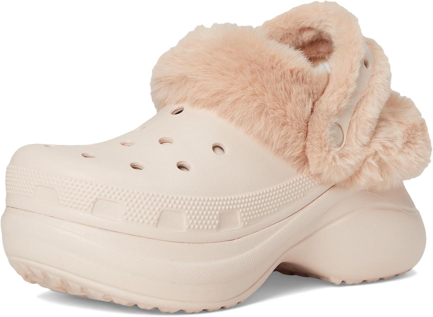 Crocs Women’s Bae Lined Clogs, Fuzzy Platform Slippers(Quartz)