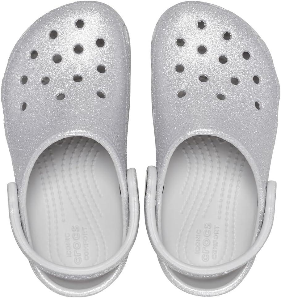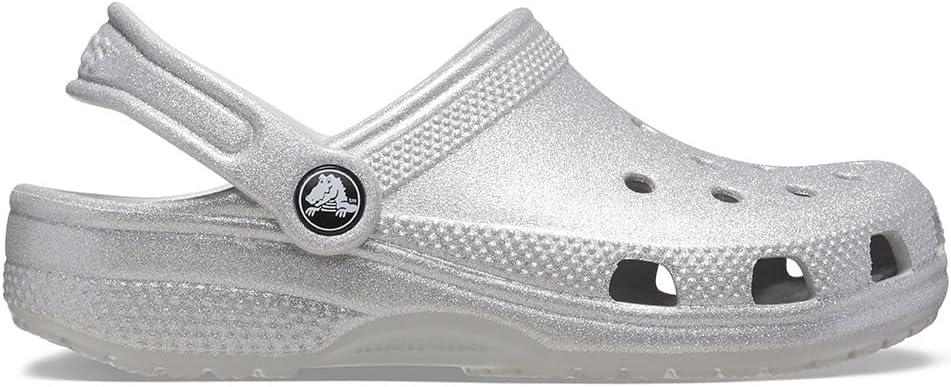 Crocs Kids’ Classic Glitter Clogs(Silver Glitter)