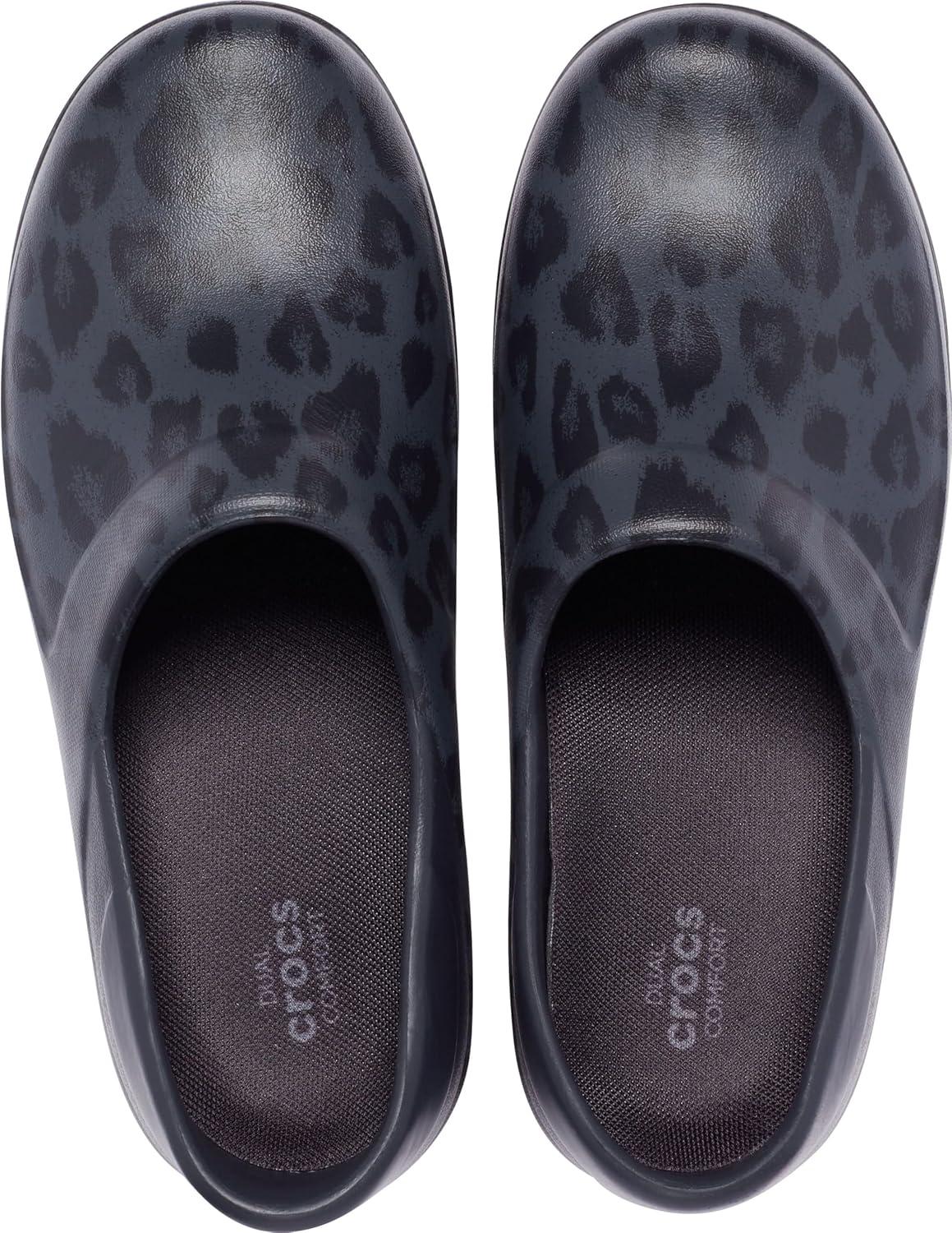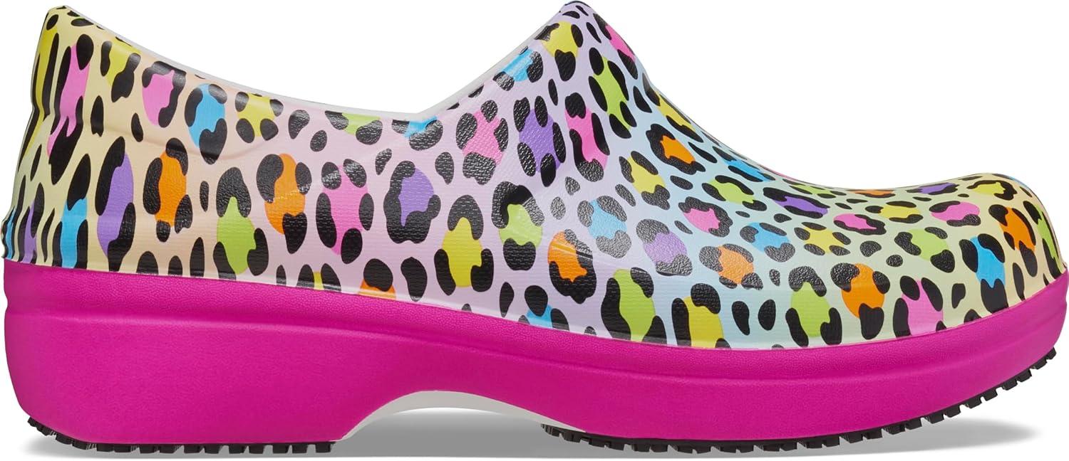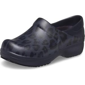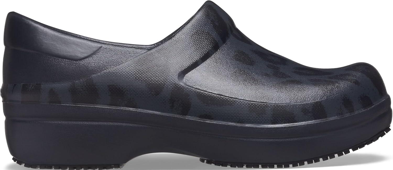 Crocs Women’s Neria Pro II Clogs, Slip Resistant Work Shoes for Women(Black/Leopard)