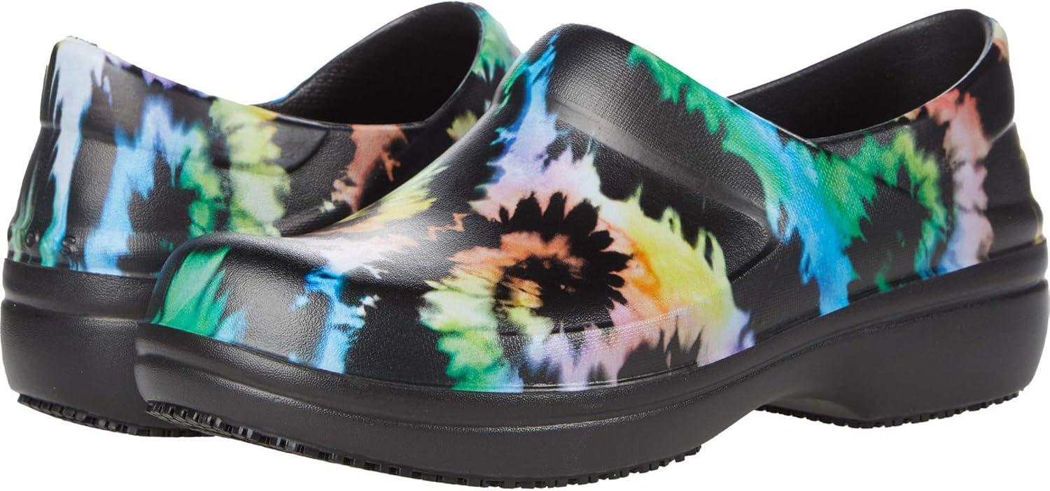 Crocs Women’s Neria Pro II Clogs, Slip Resistant Work Shoes for Women(Black/Tie-dye)