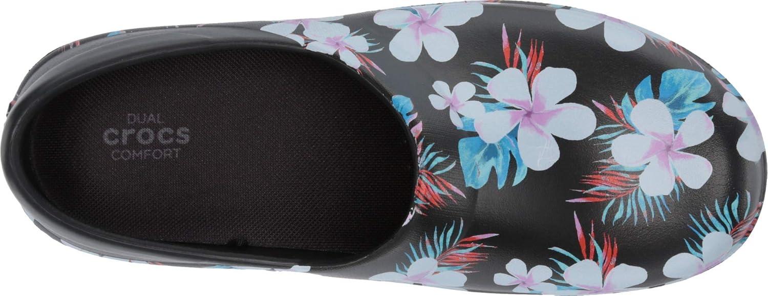 Crocs Women’s Neria Pro II Clogs, Slip Resistant Work Shoes for Women(Tropical Floral/Black)