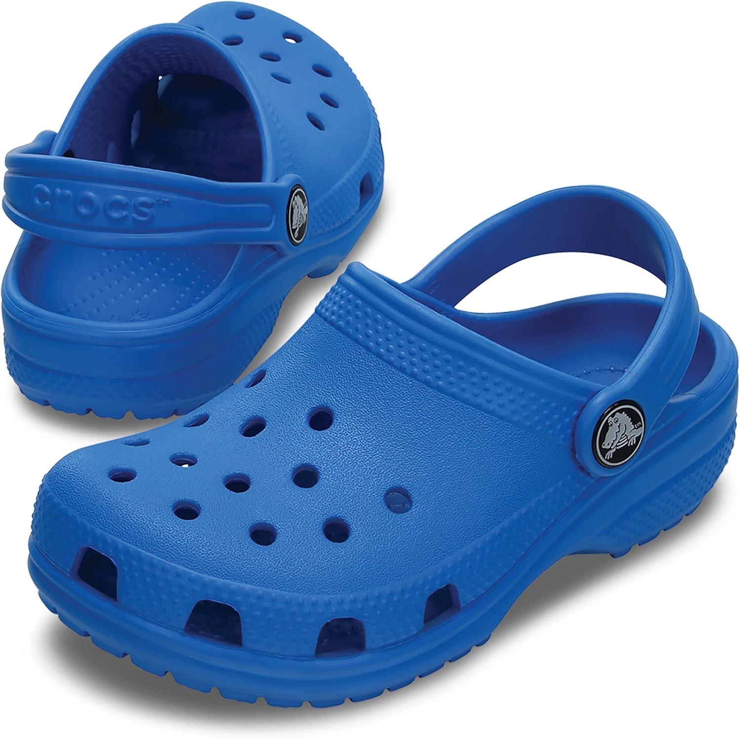 Start your little one out on the right foot with the Crocs Kids Classic Littles Clogs. EVA construction. Slip-on design. Pivoting heel straps for a more secure fit. Iconic Crocs Comfort: Lightweight. Flexible. 360-degree comfort. Non-marking outsole. Find Your Size: We recommend sizing up (e.g. if you are a 7.5, size up to an 8)