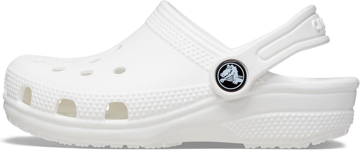 Start your little one out on the right foot with the Crocs Kids Classic Littles Clogs. EVA construction. Slip-on design. Pivoting heel straps for a more secure fit. Iconic Crocs Comfort: Lightweight. Flexible. 360-degree comfort. Non-marking outsole. Find Your Size: We recommend sizing up (e.g. if you are a 7.5, size up to an 8)