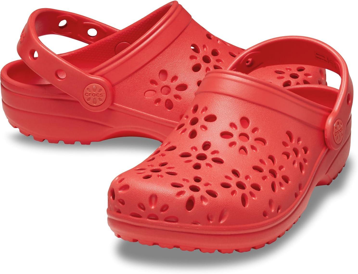 Crocs Kids’ Classic Floral Design Clogs(Cherry Red)