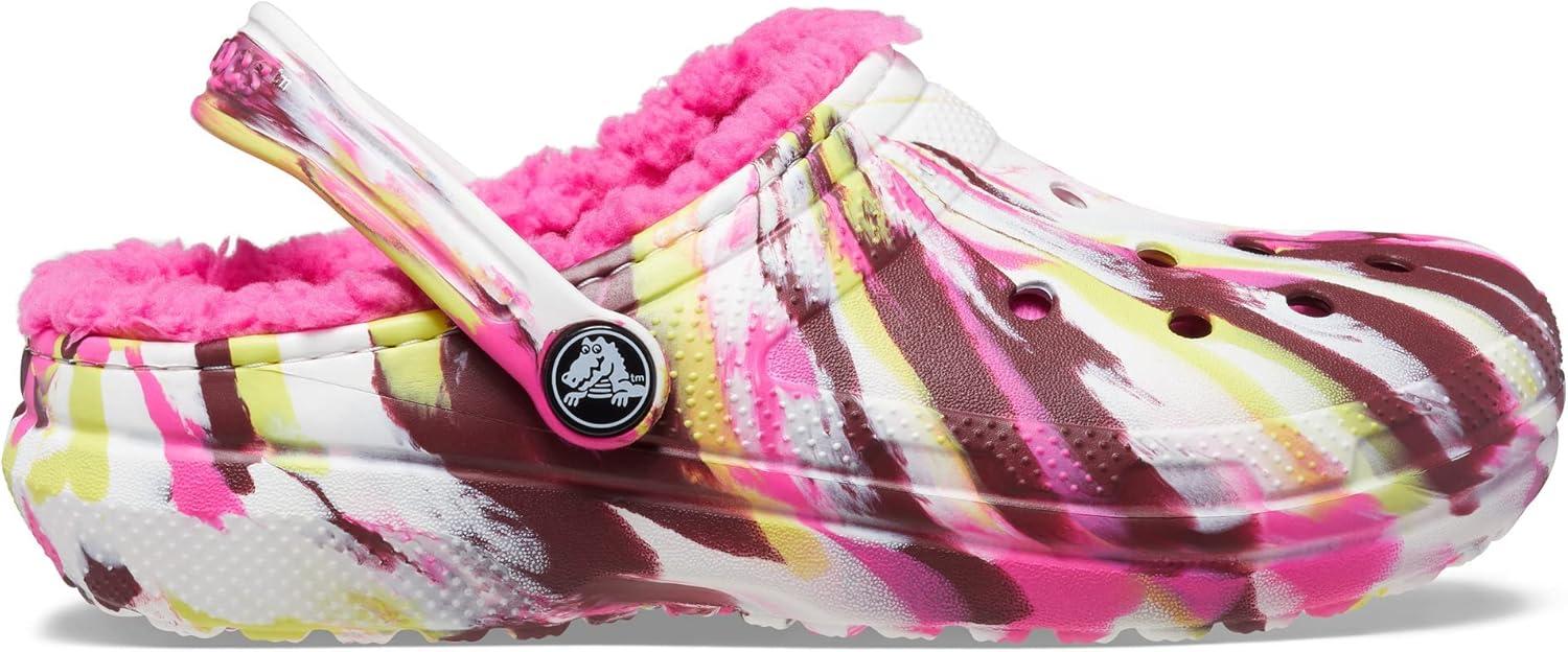 Crocs Kids’ Classic Lined Clogs(Electric Pink/Multi Marbled Tie-dye)