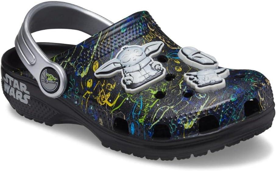 Easy on, easy off! Just like the adult Classic, the kids’ version offers amazing comfort and support, thanks to the light, durable Croslite material and design. This version features graffiti style Star Wars graphics and fixed embellishments featuring “The Child”. This is the way.