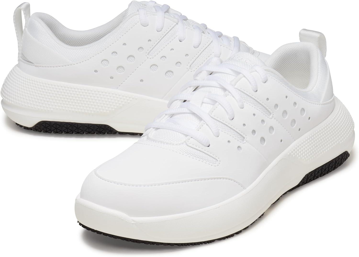 Our latest style to join the Crocs at Work Collection, the On the Clock Sneaker, was designed with hard workers like you in mind. This durable shoe features breathable yet easy to clean uppers and premium LiteRide footbeds that deliver support and cushioning where your feet need it most. And because we know spills happen, our tried-and-true Crocs Lock slip-resistant tread ensures maximum safety in slippery conditions.