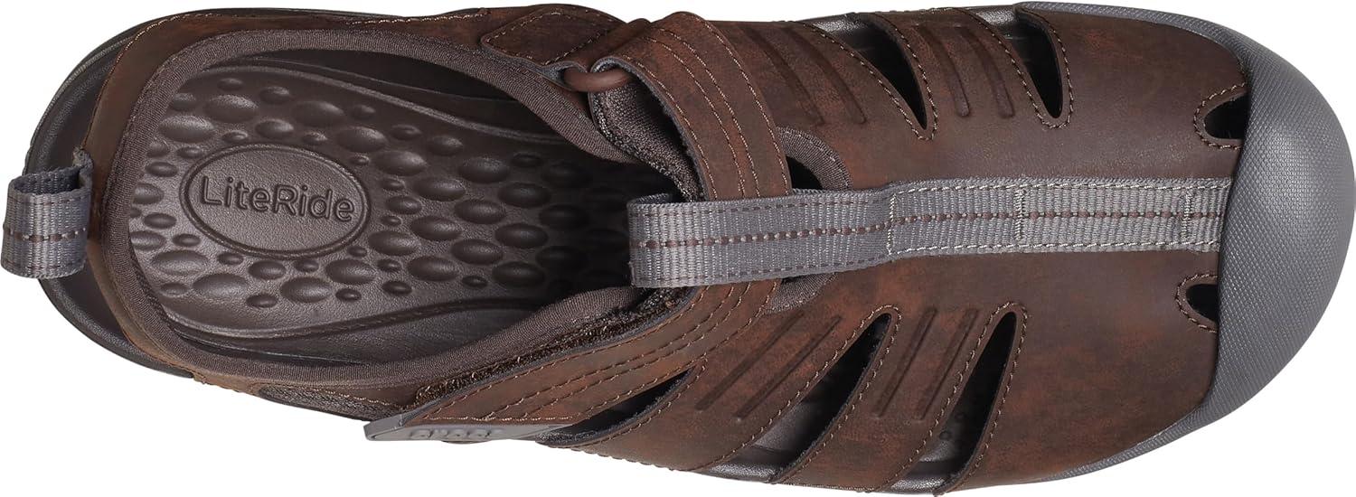 Faux leather uppers with stitched details add a dose of ruggedness to the Men’s Yukon Fisherman Sandal. Get outside in comfort and feel stylish in this versatile, easygoing fisherman sandal. Croslite foam outsoles can handle the outdoor elements while LiteRide footbeds provide sink-in softness around the campfire, on the trail, or back home.