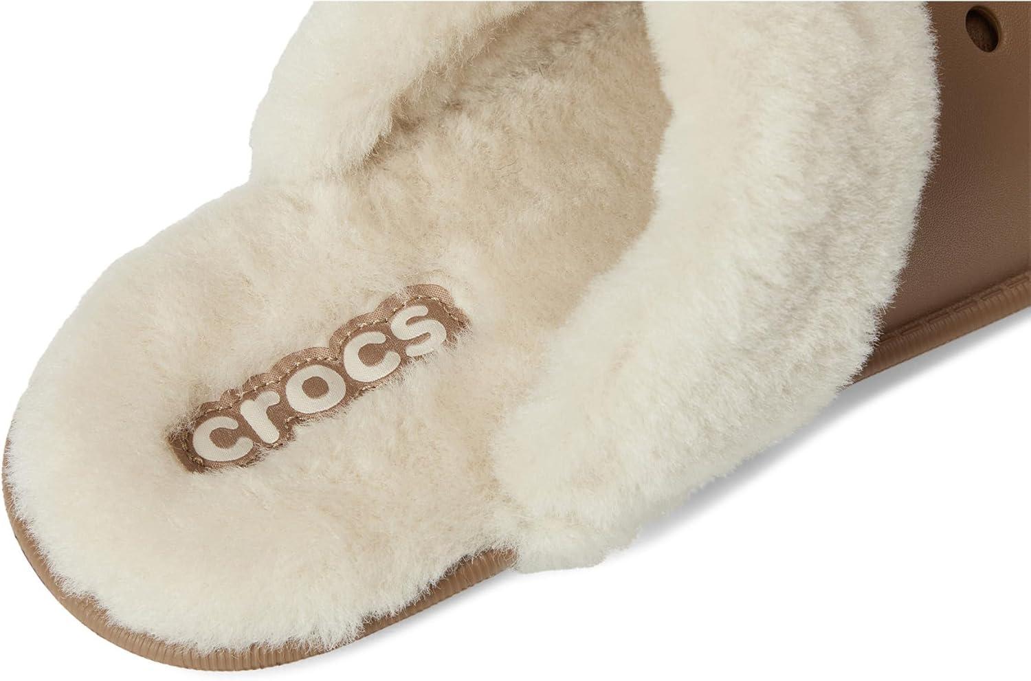 Crocs unisex-adult Classic Fuzz Scuff Slippers(Sepia)