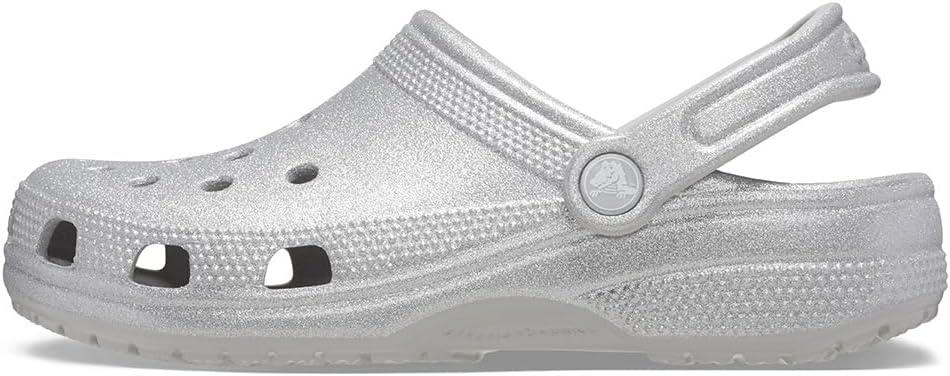 Crocs Unisex-Adult Classic Glitter Clogs(Silver Glitter)
