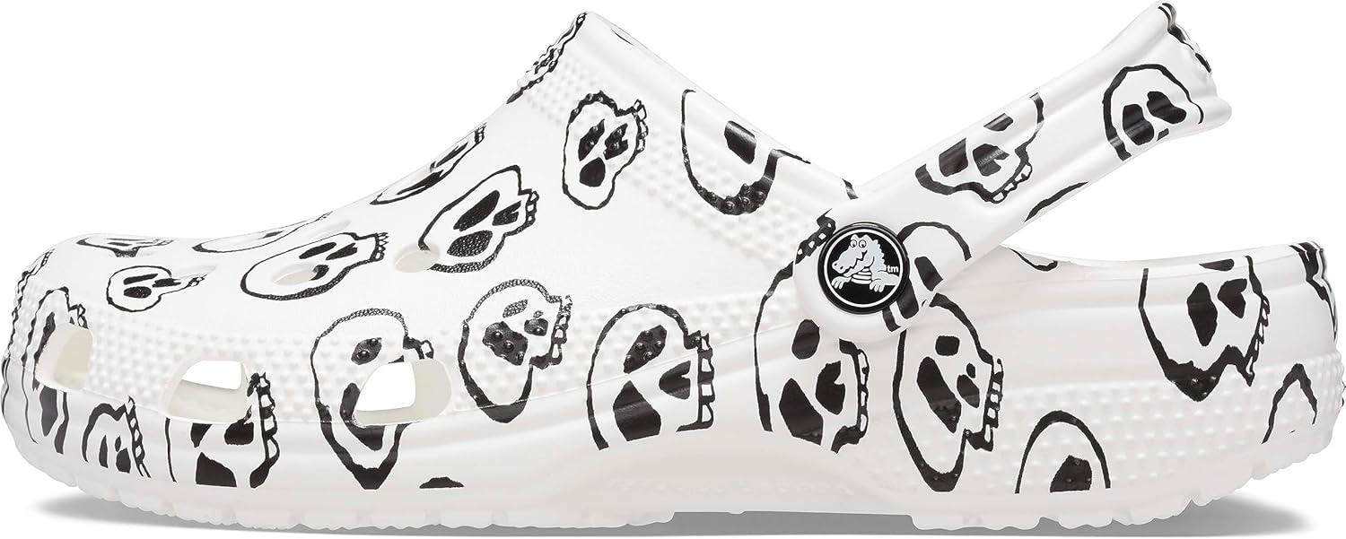 Crocs Unisex-Adult Classic Graphic Clogs(White/Black)