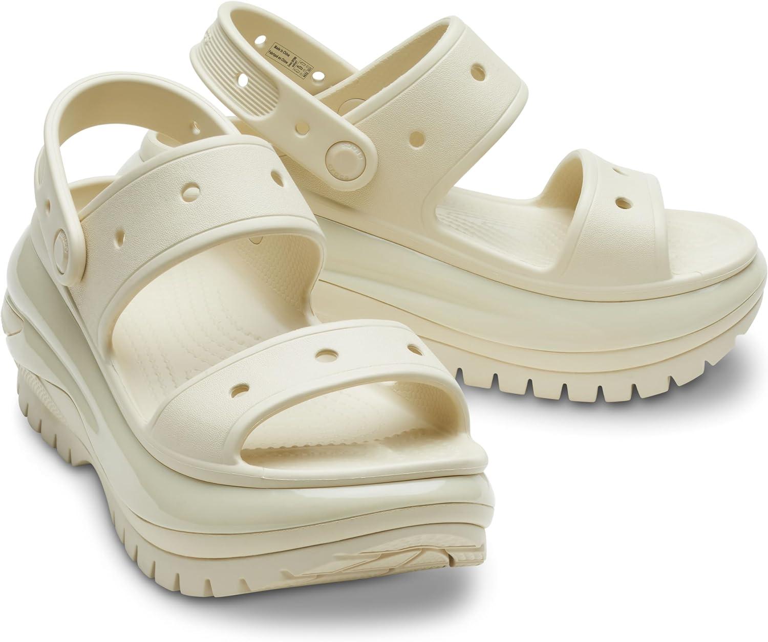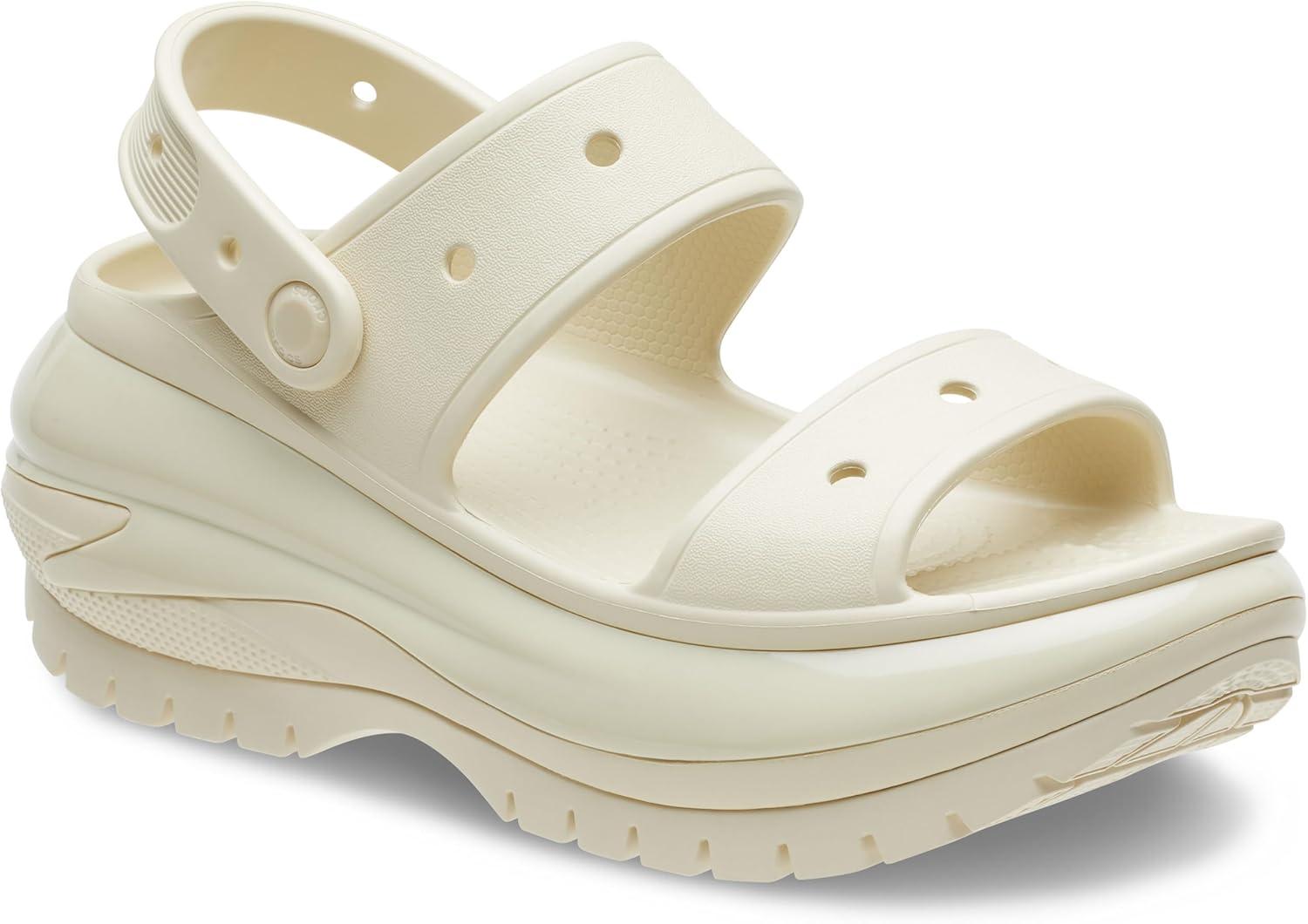 Crocs Unisex-Adult Classic Mega Crush Sandal | Platform Sandals(Bone)