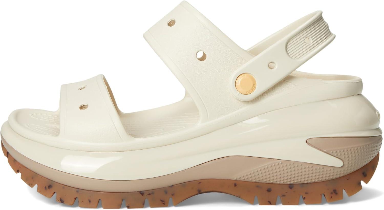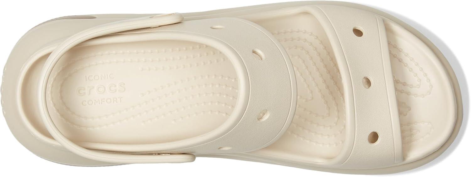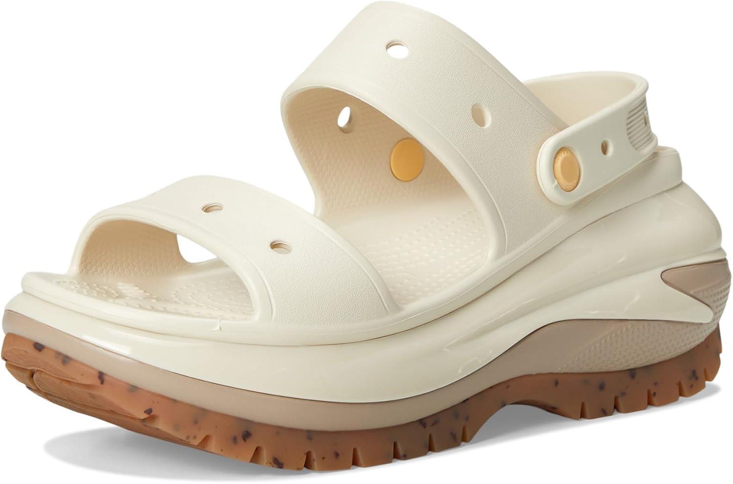 The look and feel of our Classic Mega Crush Clog is now available in sandal form. Introducing the Classic Mega Crush Sandal, featuring an enhanced rubber tread, updated detailing around the outsole and a platform ready to take any outfit to the next level. A two-strap upper and secure backstrap help ensure a secure fit, while boasting holes for personalization with Jibbitz™ charms. Are you ready for your new crush?