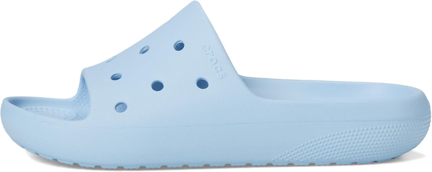 Elevate your casual style wearing the Crocs Classic Slide 2.0. Size down a full size. If you are a size 8 normally, please order a size 7. Slip-on construction. Brand detailing on the footbed. Open round toe design. Thermoplastic midsole and outsole. Deep cupped Croslite foam footbed. Imported.