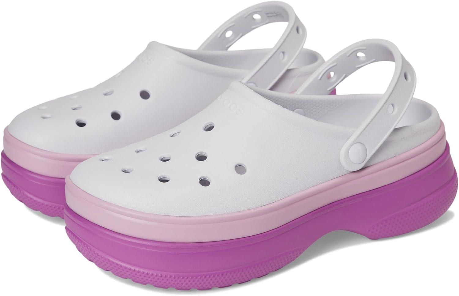 Rise and shine wearing Crocs Classic Stacked Clogs Platform are where bold fashion meets legendary comfort. Designed with a sleek EVA upper and a tri-tone banded platform outsole, these unlined slip-ons give your look an instant lift, literally. Lightweight yet eye-catching, they're the perfect pair for styling up everything from streetwear staples to cozy loungewear. The Croslite footbed cushions every step, while pivoting heel straps offer a snug, secure fit.