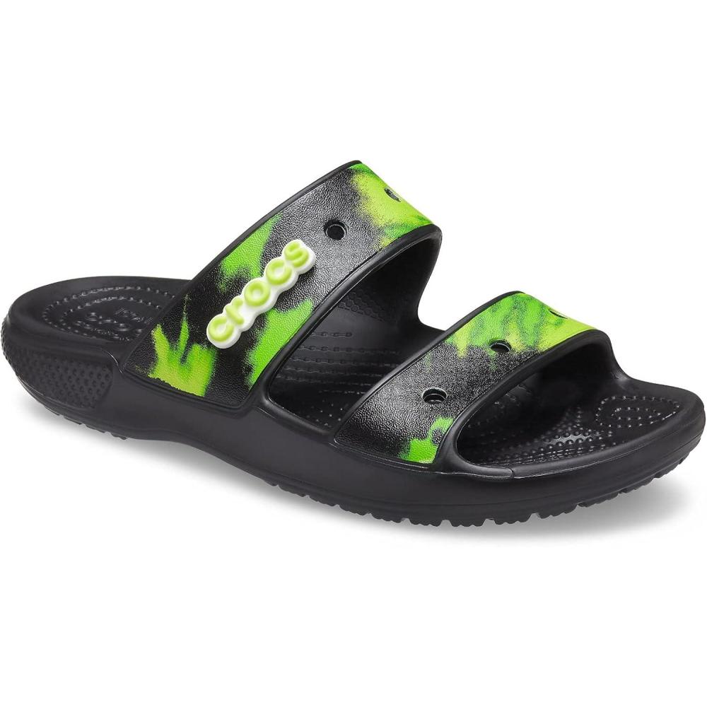 Crocs Unisex Adult Classic Two-strap Slide Sandals(Black/Lime Punch)