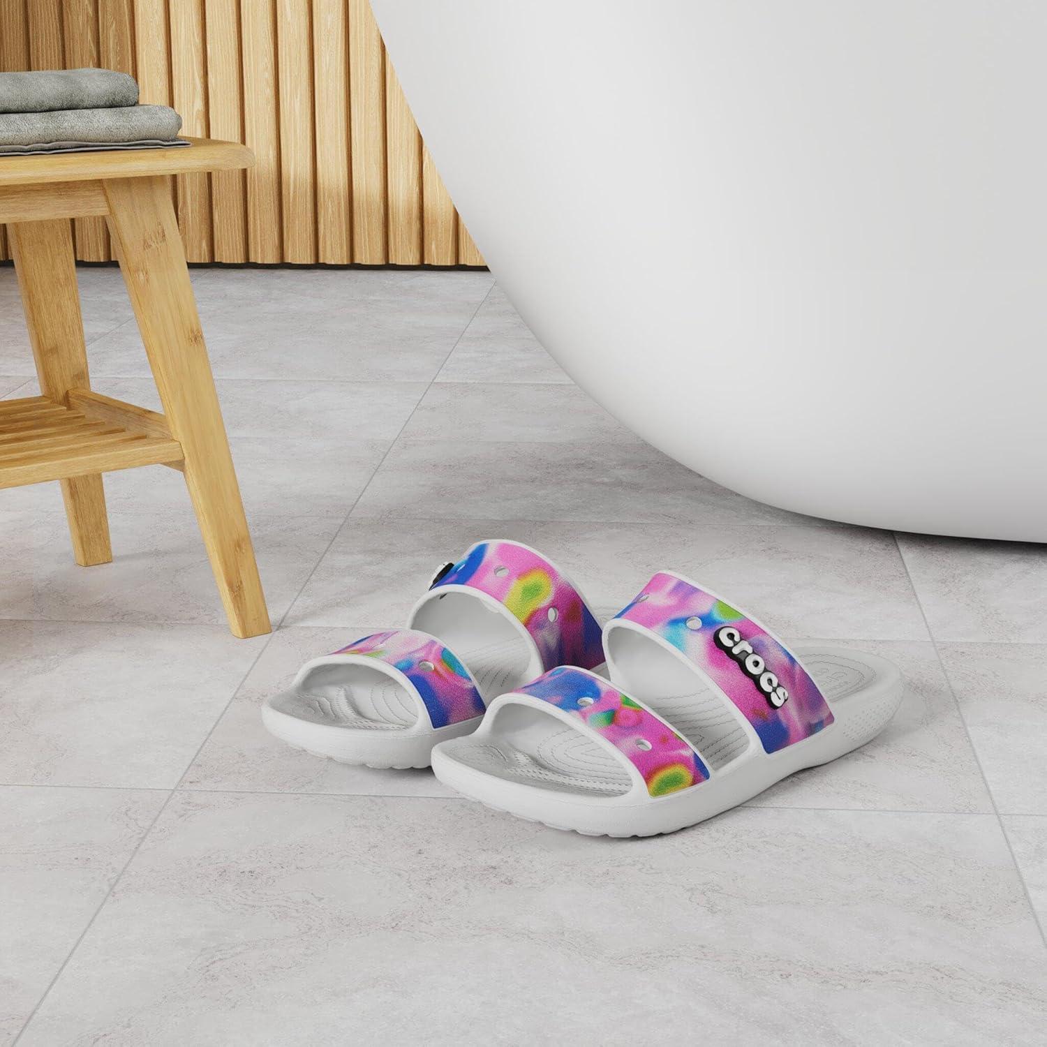 Crocs Unisex Adult Classic Two-strap Slide Sandals(White/Pink)