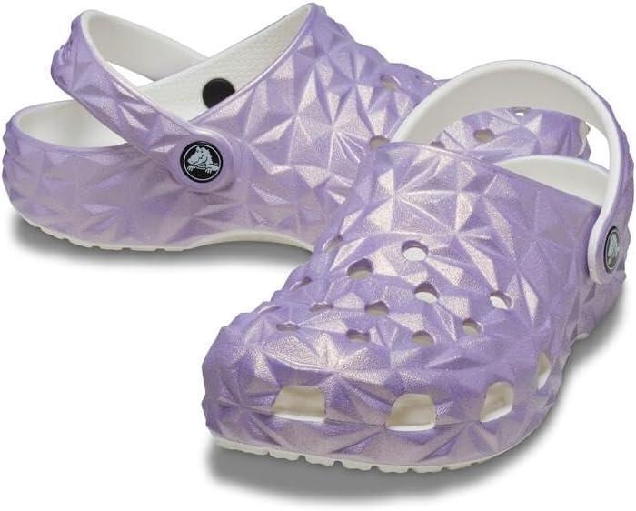 Crocs unisex-child Classic Geometric Clog(White/Iridescent)