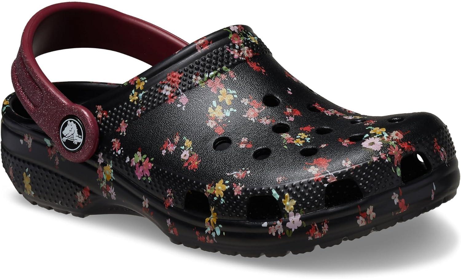 Crocs Unisex-Child Classic Graphic Clog(Black/Multi Ditsy Floral)