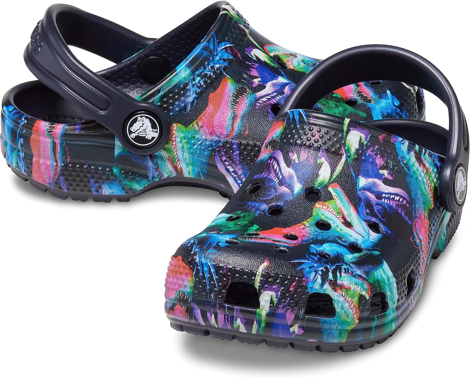 Crocs Unisex-Child Classic Graphic Clog(Deep Navy/Multi Dino)