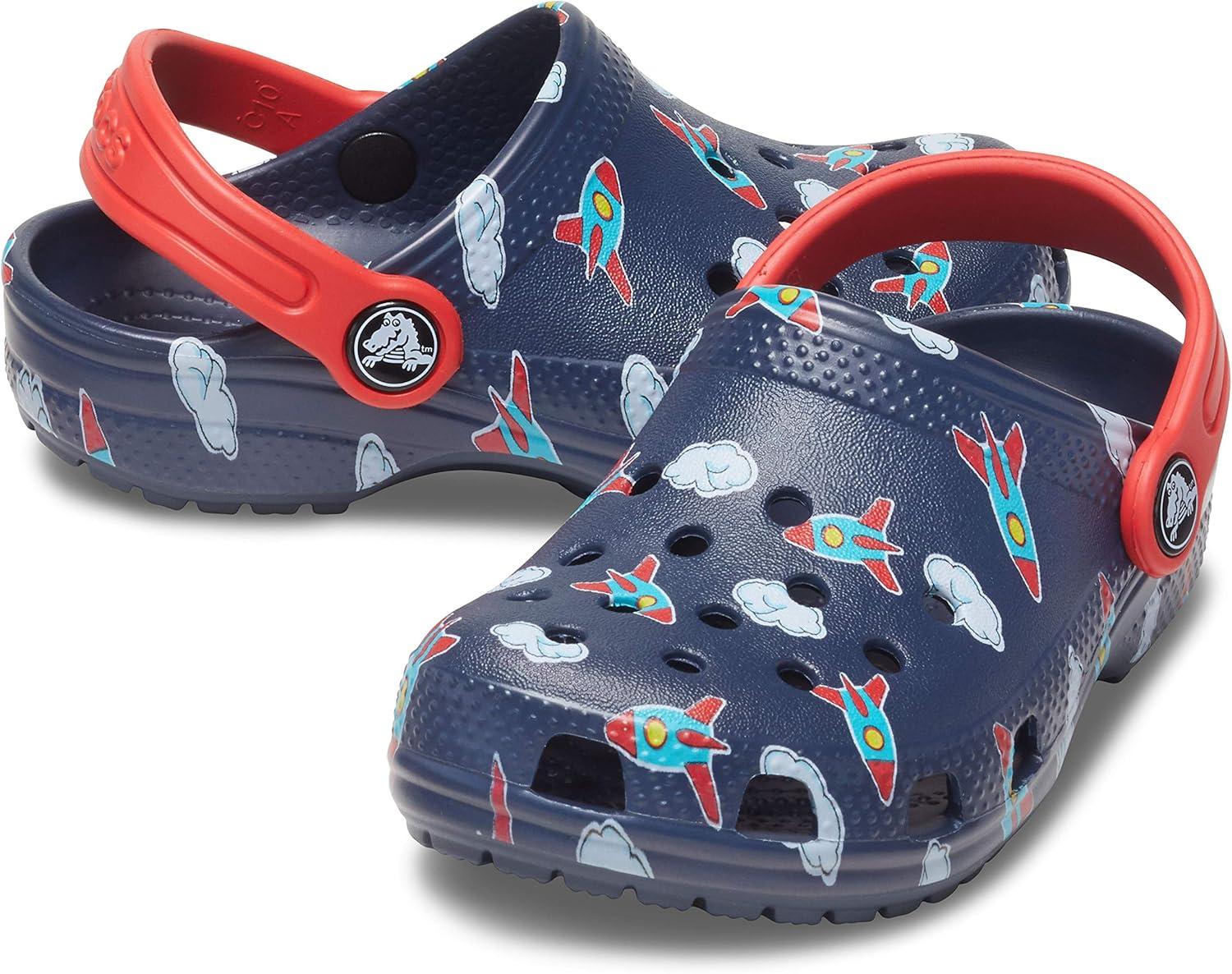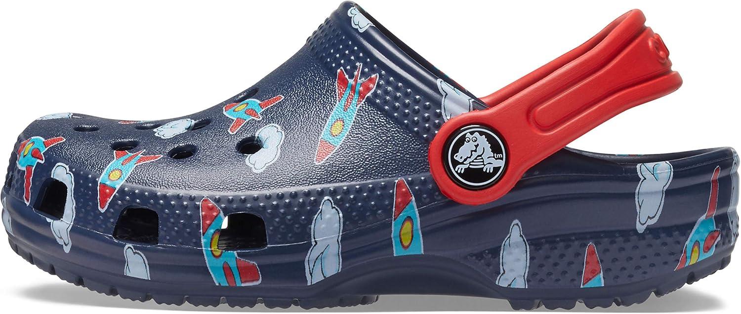 Crocs Unisex-Child Classic Graphic Clog(Rocket/Clouds)