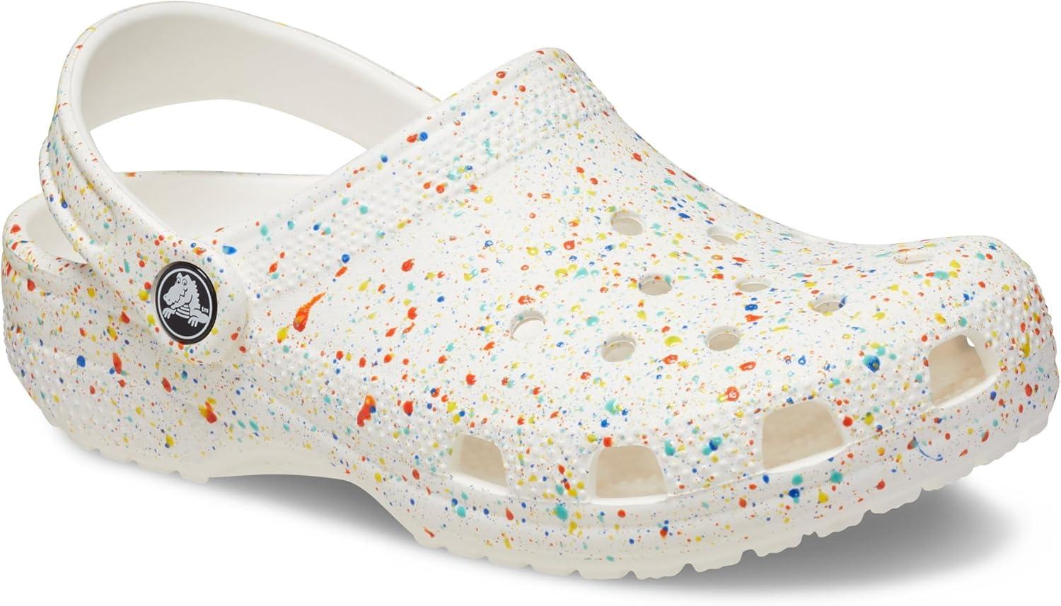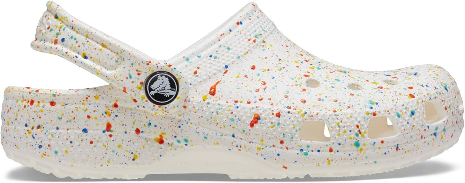 Crocs Unisex-Child Classic Graphic Clog(White/Multi Paint Splatter)