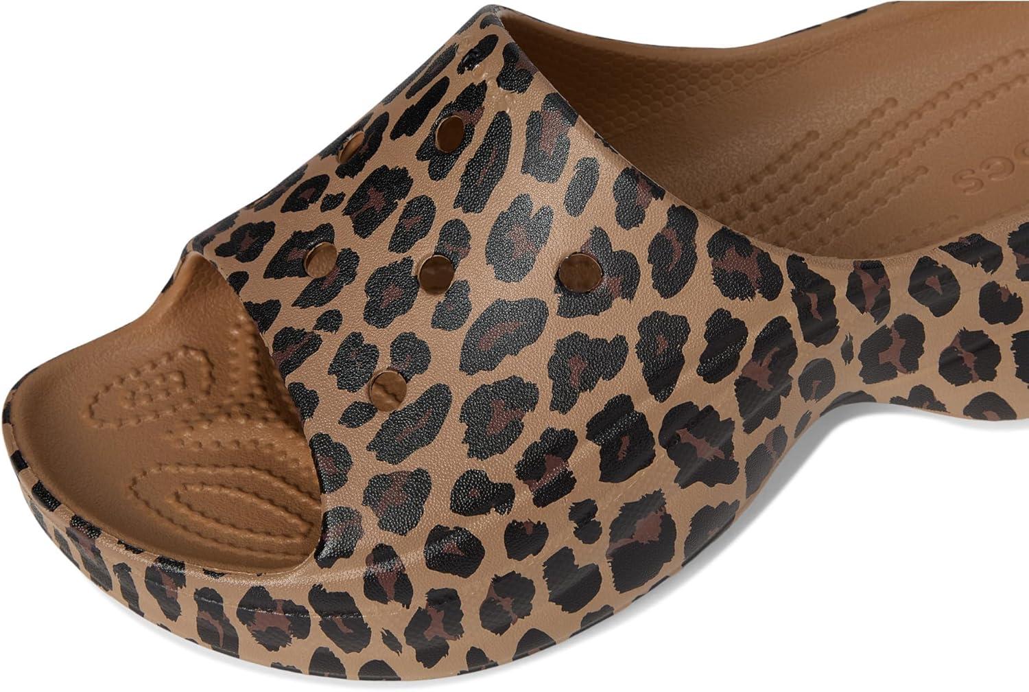 Crocs Women’s Bae Slide Platform Sandals(Sepia/Leopard)