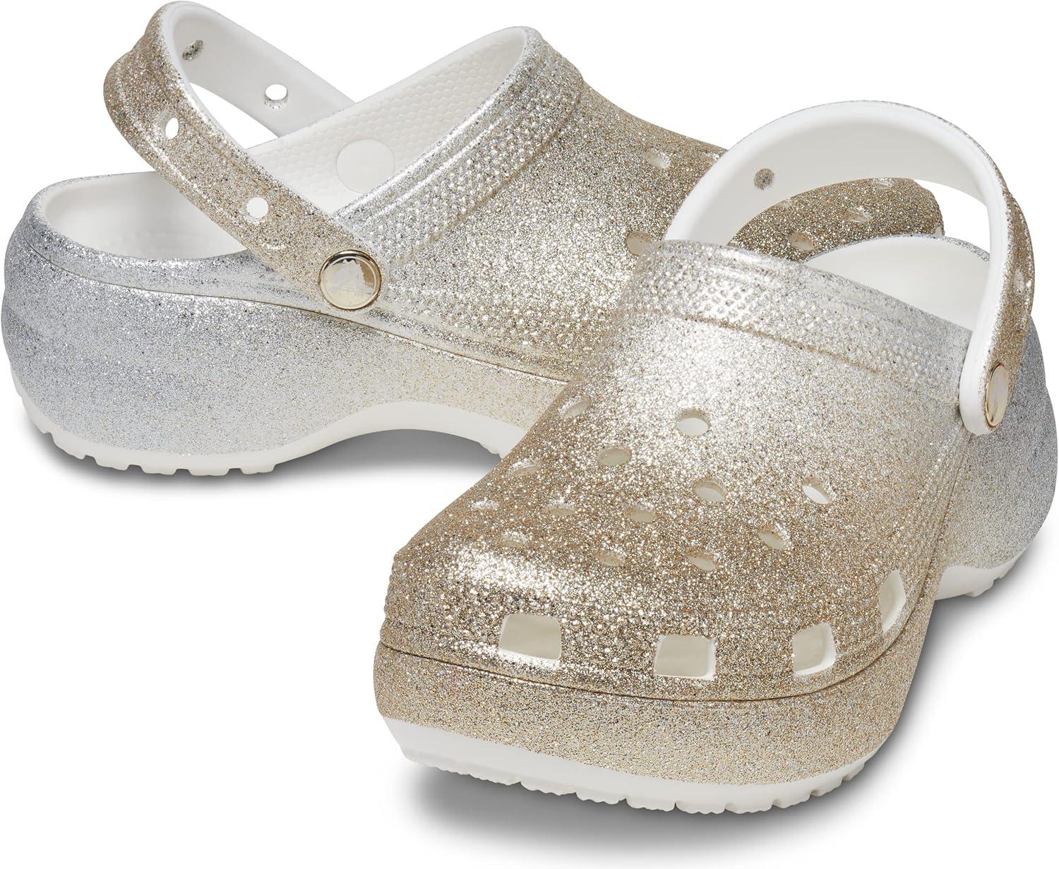 Crocs Women’s Classic Platform Glitter Clog(Ombre Glitter)