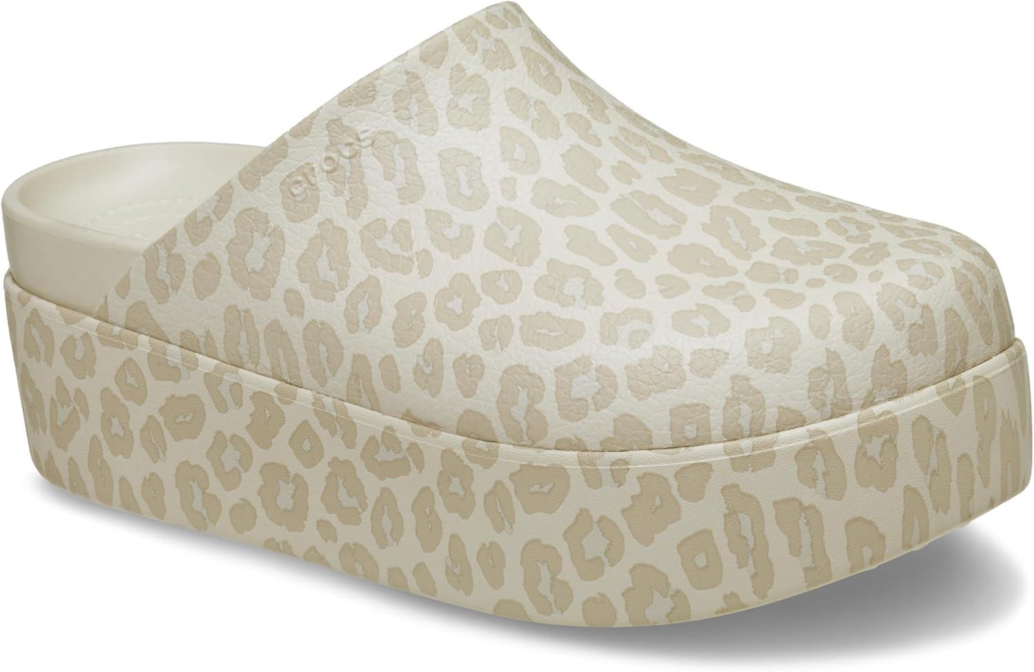 Crocs Women’s Dylan Platform Clog, Mule Platform Shoes for Women(Almond Tint/Leopard)