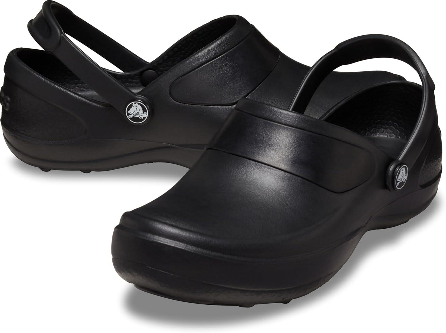 Made for on-the-job comfort. Roomy by design like the original Classic Clog, the Mercy Work Clog offers generous room all around the foot. It has Crocs Lock tread for slip-resistance, a heel-hugging backstrap, and a closed heel.
