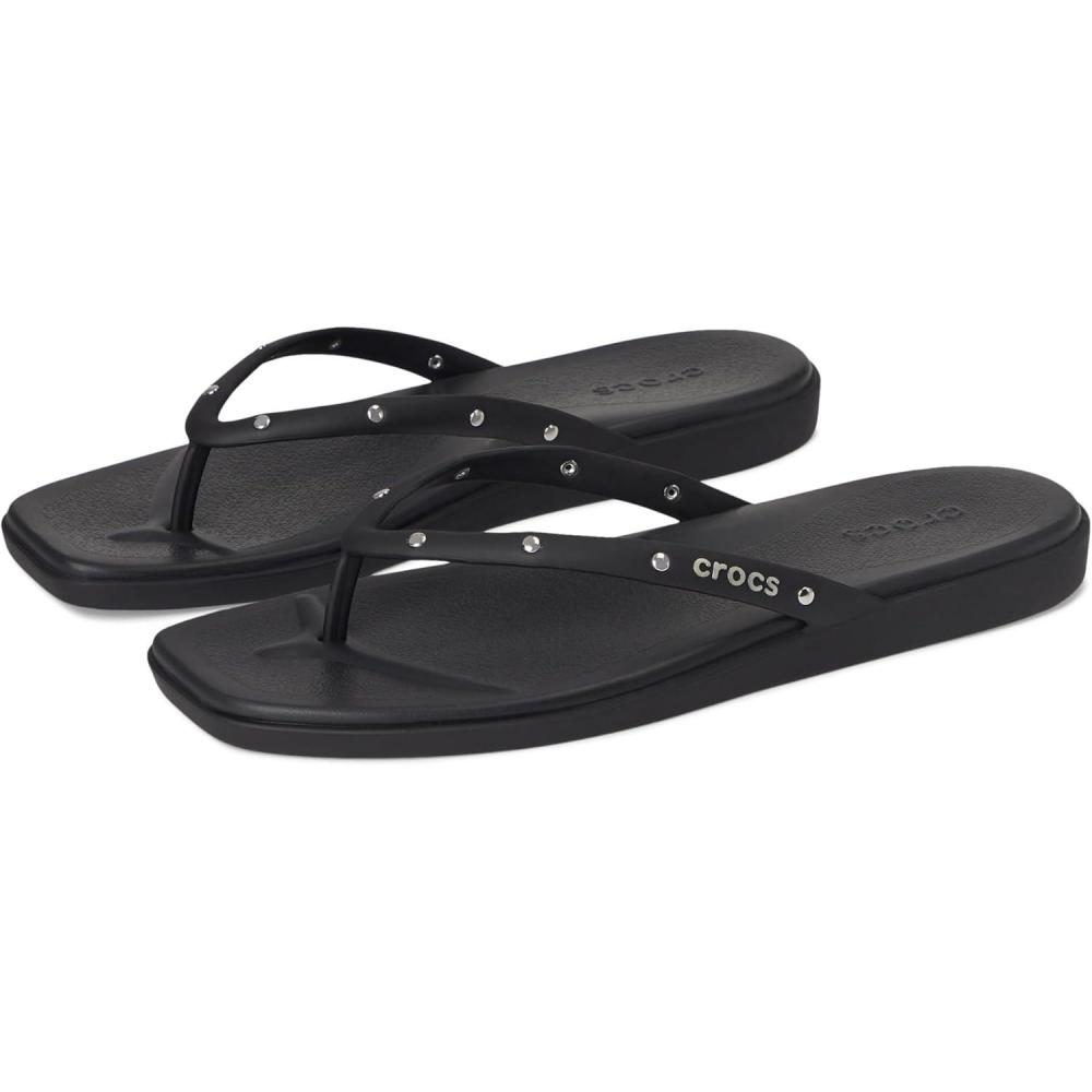 Crocs Women’s Miami Flip Flops, Thong Sandals(Black Studs)