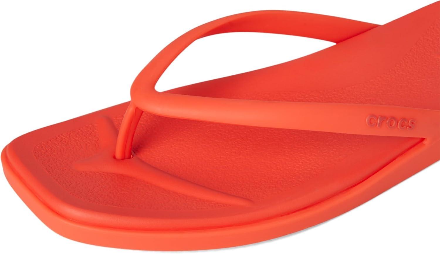 Stride with maximum ease in these Crocs Miami Flip Flops. Featuring lightweight construction and slip-resistant treads, they are perfect for casual outings or beach days. Made with water-friendly materials, these flip flops shed water and debris easily, ensuring durability and practicality. Soft, flexible TPU uppers for all-day comfort from the first wear. Inner lining features Iconic Crocs Comfort: Lightweight, flexible, and 360-degree comfort. Drop-in Croslite footbed and outsole. Slip-on style. Trendy square toe design with a chic, gradual wedge for subtle lift.