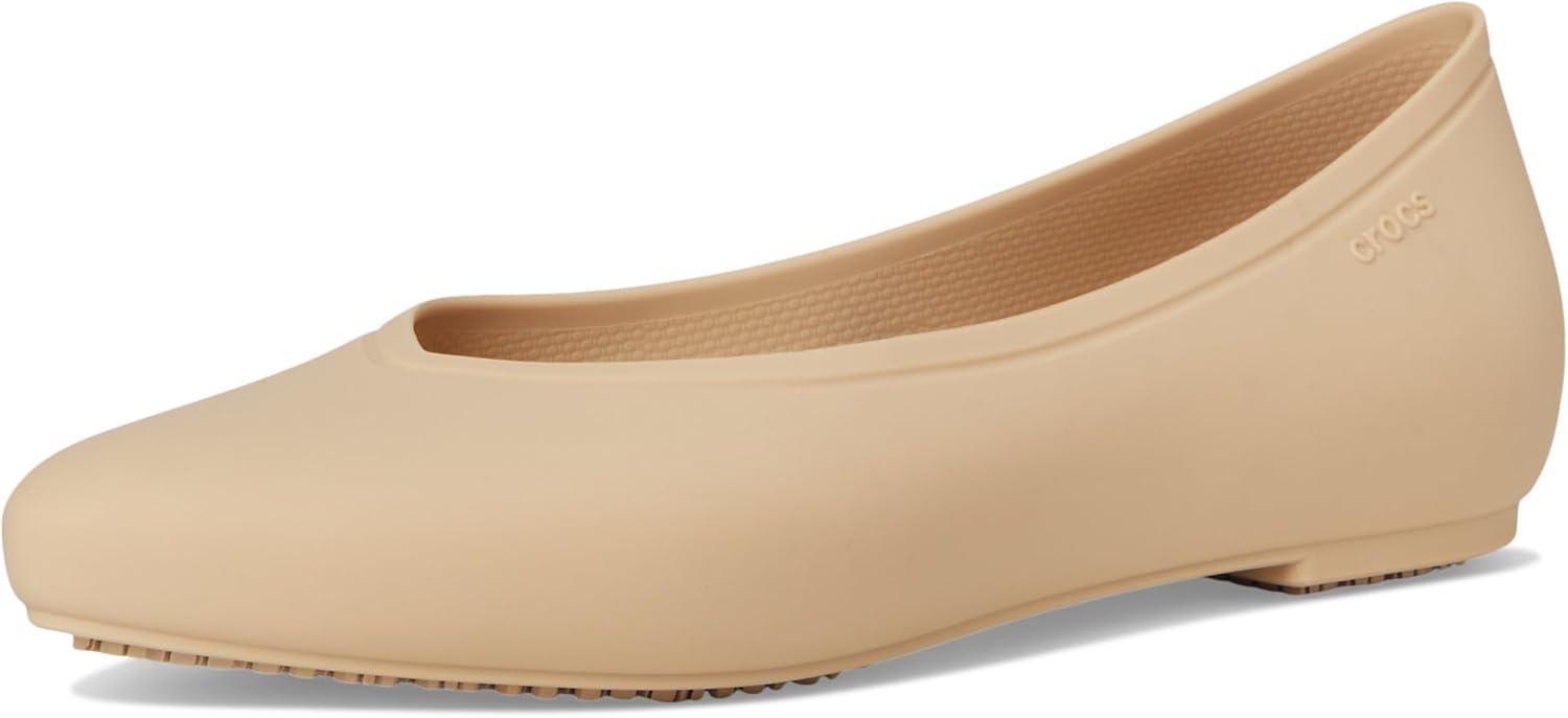 Your reliable partner for all-day comfort and style, Crocs Work On the Clock Work Flats. Designed with a modern pointed toe and sleek slip-on silhouette, these flats balance professionalism with performance. The lightweight EVA upper is breathable, easy to clean, and built for long shifts. Inside, the premium LiteRide footbed cushions every step, offering plush support where it matters most. With a durable rubber outsole and Crocs Lock slip-resistant tread, you'll stay grounded and confident on a variety of surfaces. Unlined for breathability and molded for a secure fit, these flats work as hard as you do.