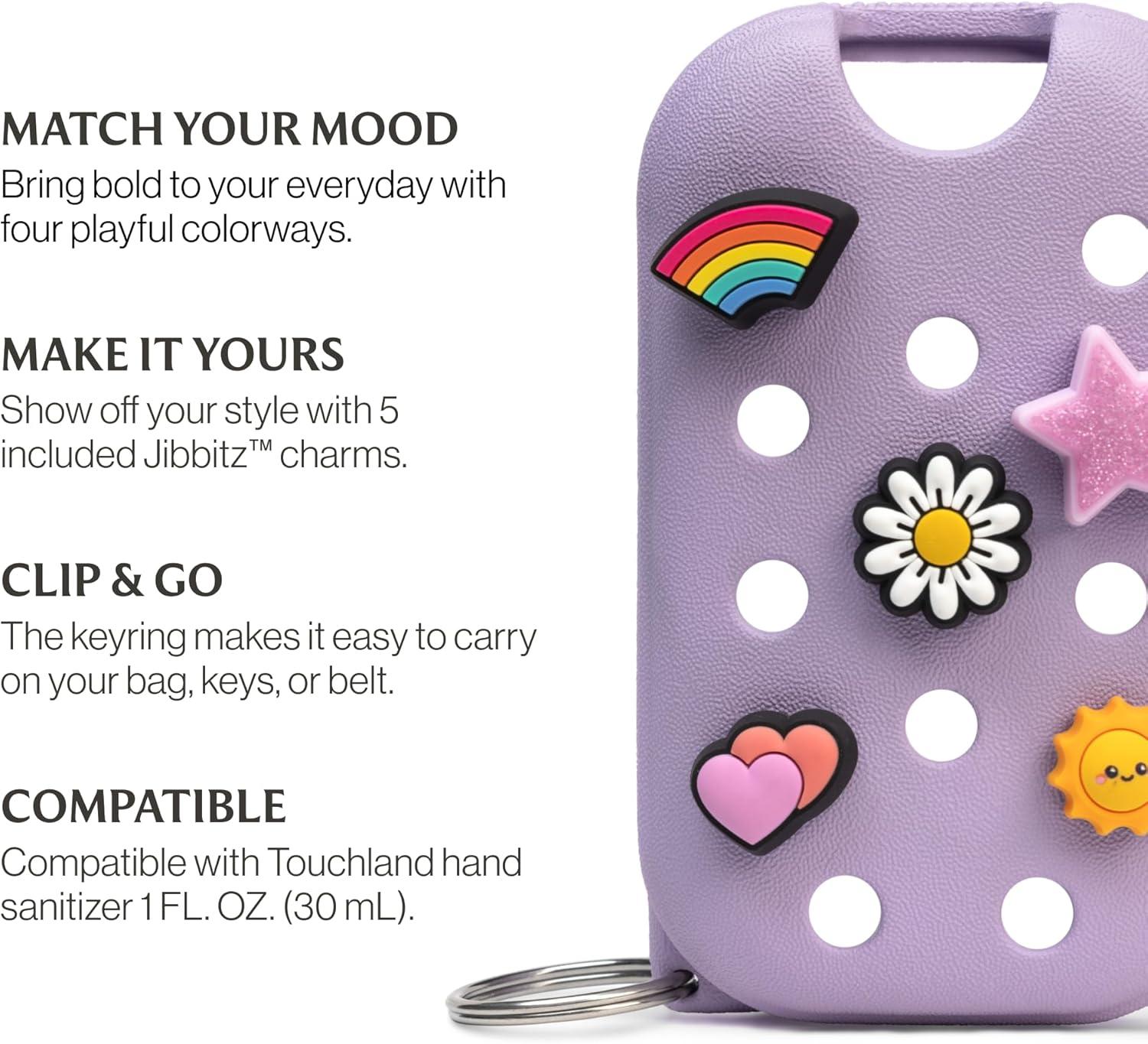 Touchland x Crocs Limited Edition Mist Case 1 Fl. OZ., Stylish Hand Sanitizer Spray Accessory, with 5 JibbitzTM Charms and Keyring, Pixie Lavender Color(Pixie Lavender)
