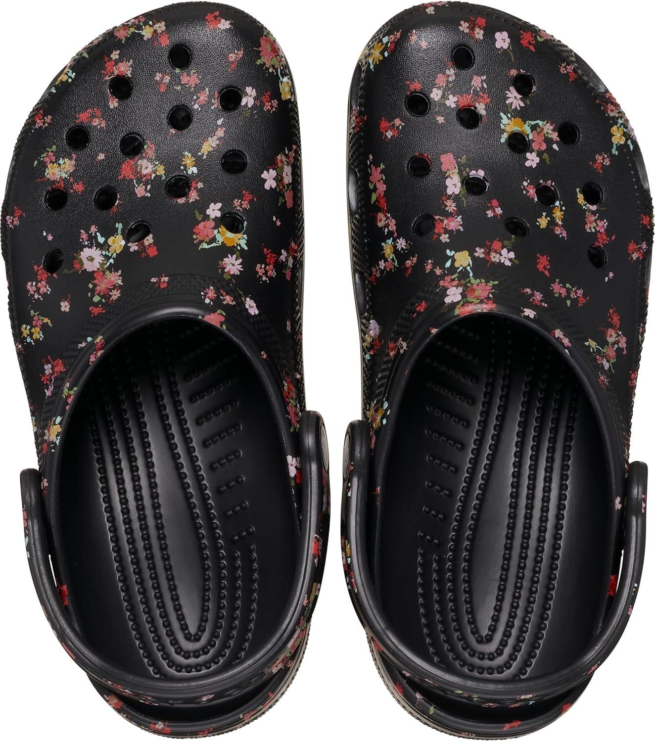 Crocs Unisex-Adult Classic Graphic Clogs(Black Ditsy)