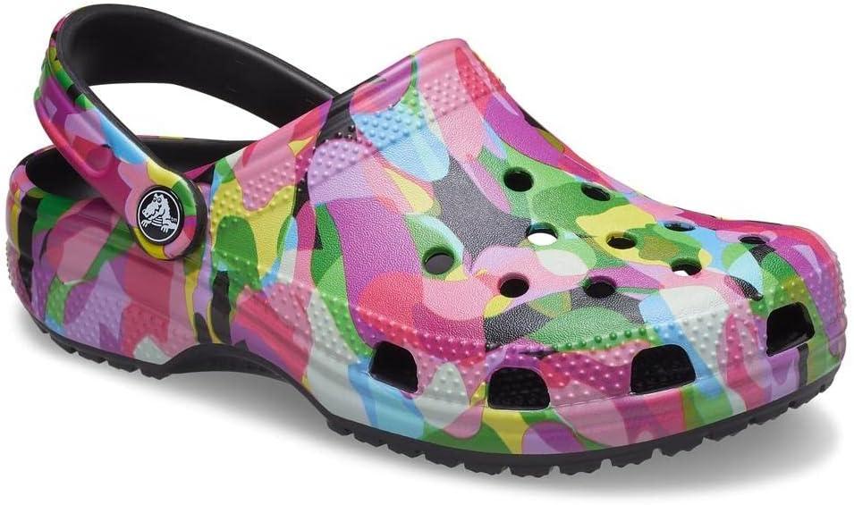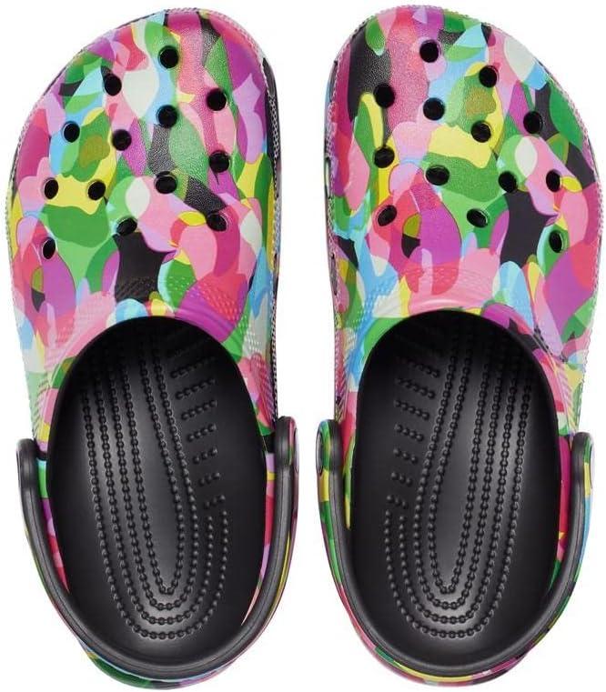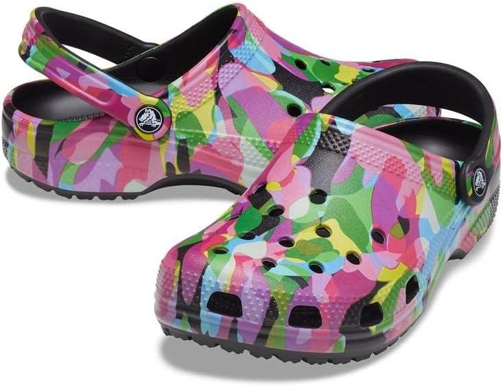 Crocs Unisex-Adult Classic Graphic Clogs(Black/Multi)